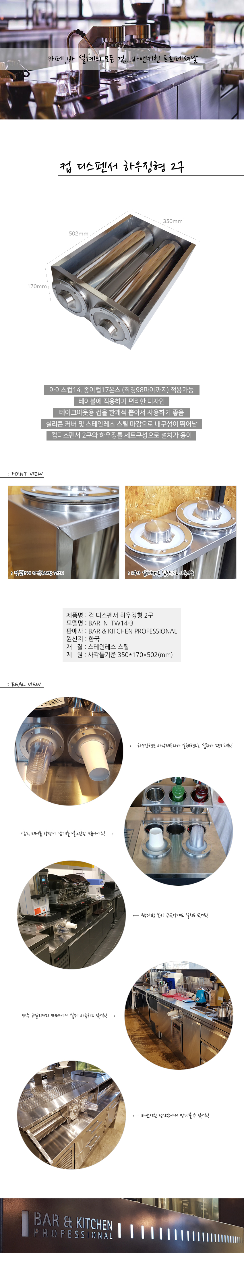 [바앤키친] 컵 디스펜서 하우징형 2구 TW14-3