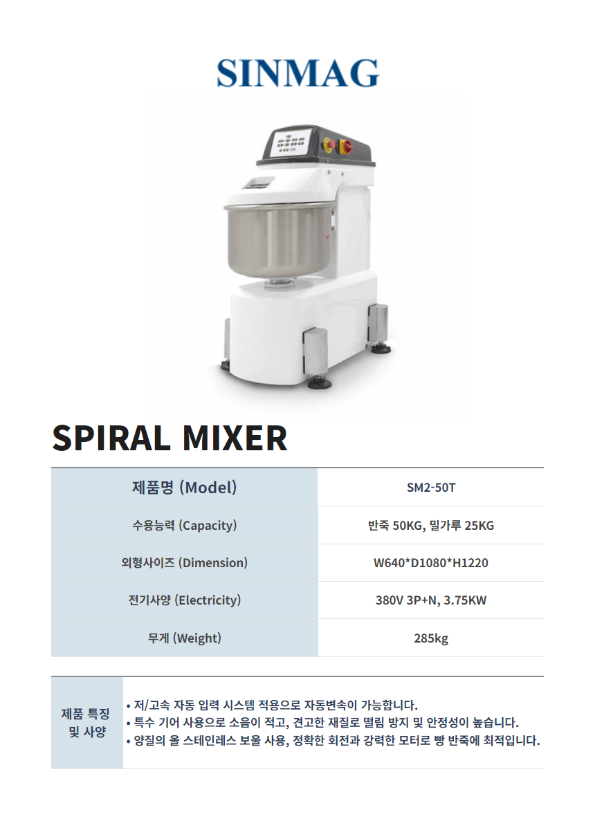 신맥 스파이럴 믹서 50kg 반죽기 SM2-50T (정품)