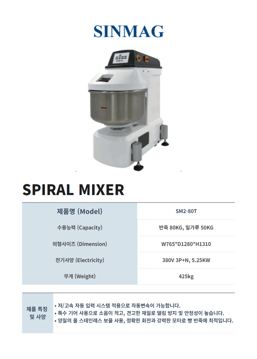 신맥 스파이럴 믹서 80kg 반죽기 SM2-80T (정품)