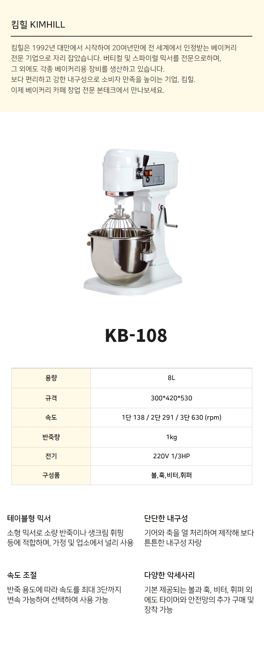 [킴힐] 8L 버티컬믹서 KB-108 소형 테이블믹서