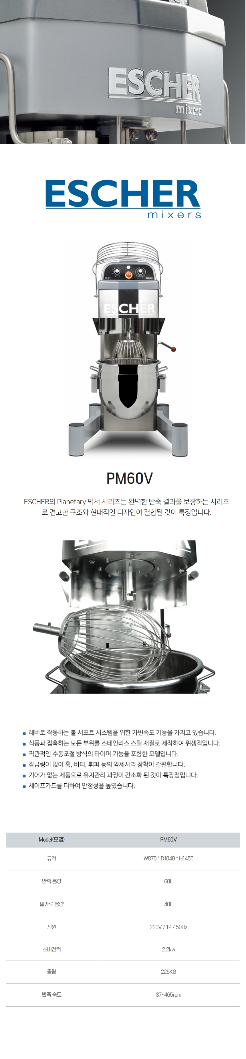 [에셔] PM60V 60L 업소용 스파이럴믹서(정품)