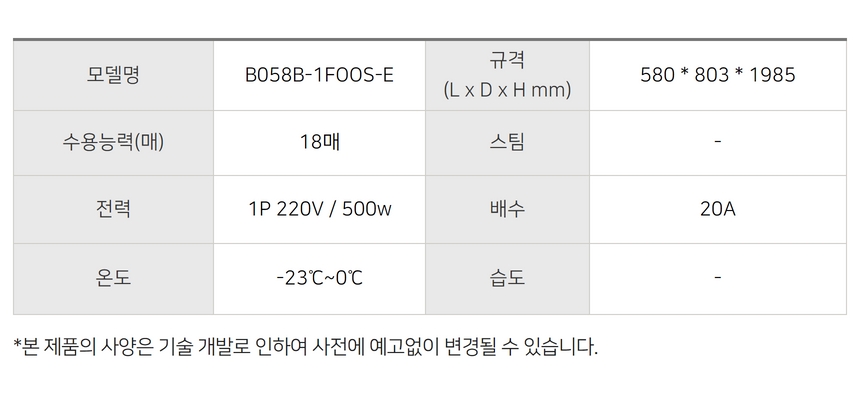 [부성] 제빵용 냉동고 18매 B058B-1FOOS-E (정품)