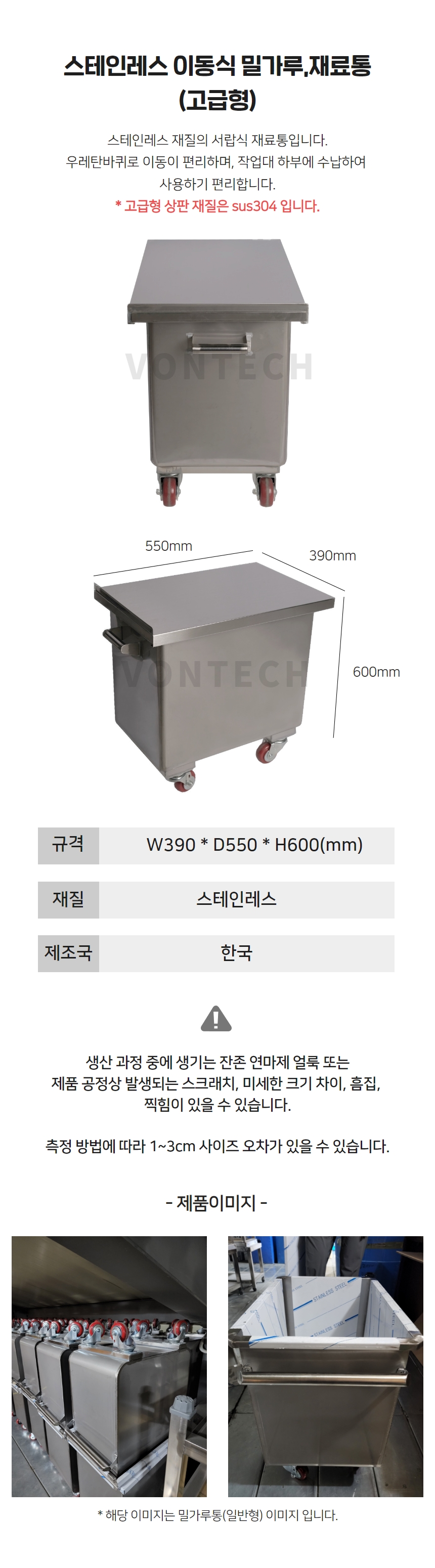 스텐 이동식 밀가루 보관통 반죽통 재료통 가루통 20kg 고급형