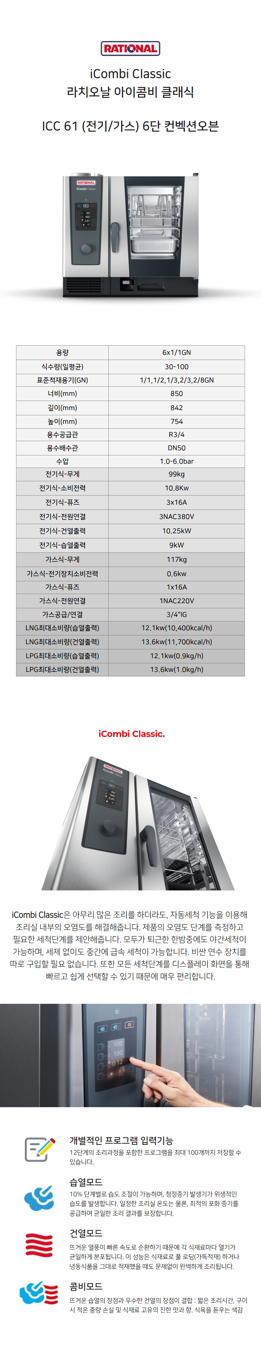[라치오날] 콤비스티머 아이콤비 클래식 ICC61 전기식/가스식 6단 컨벡션오븐 (정품)