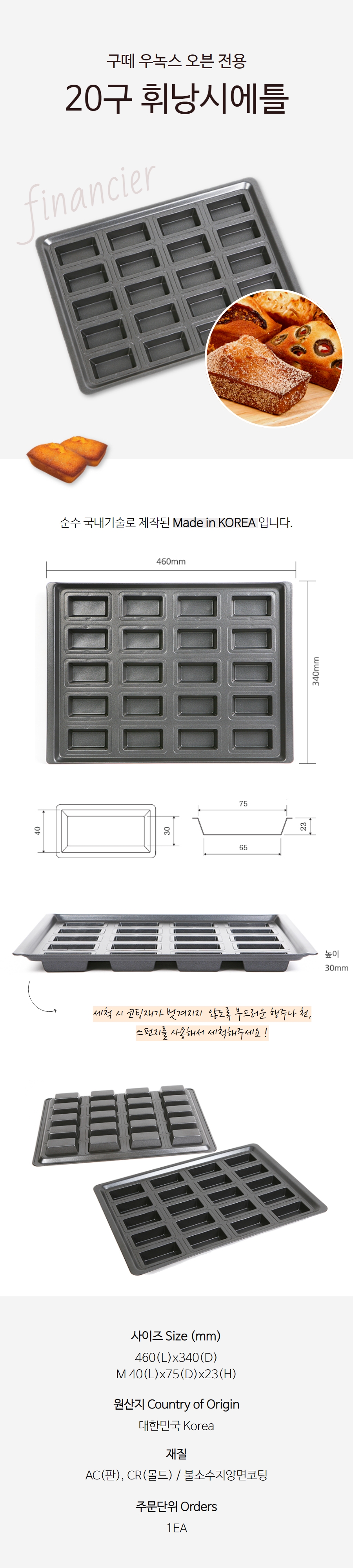 구떼 우녹스 오븐용 20구 높은 휘낭시에틀 / 휘난새 / 피낭시에