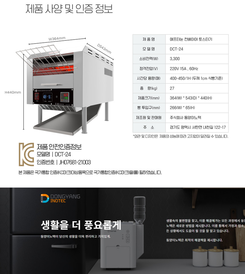 동양이노텍 애프터눈 국산 컨베이어 토스터기 DCT-24