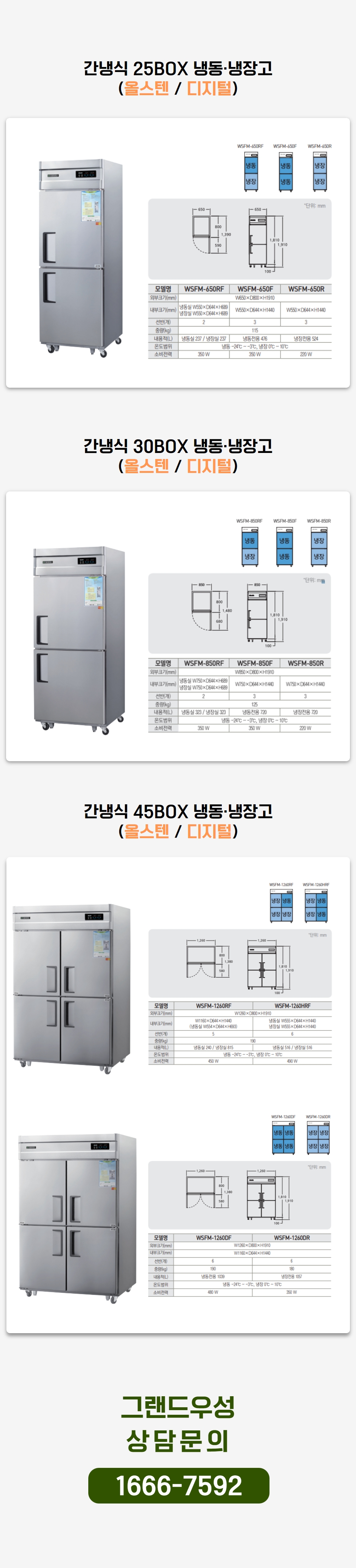 [그랜드우성] 간냉식 30BOX 수직 냉장냉동고