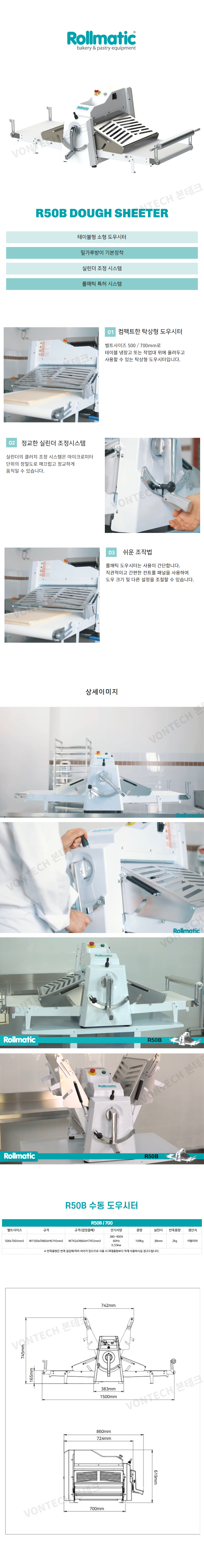 [롤매틱 정식수입] ROLLMATIC R50B 벨트사이즈 500x700 도우시터 / 롤메틱 업소용 파이롤러
