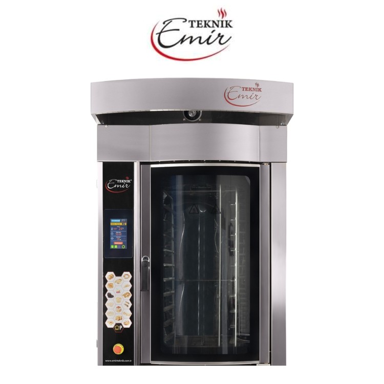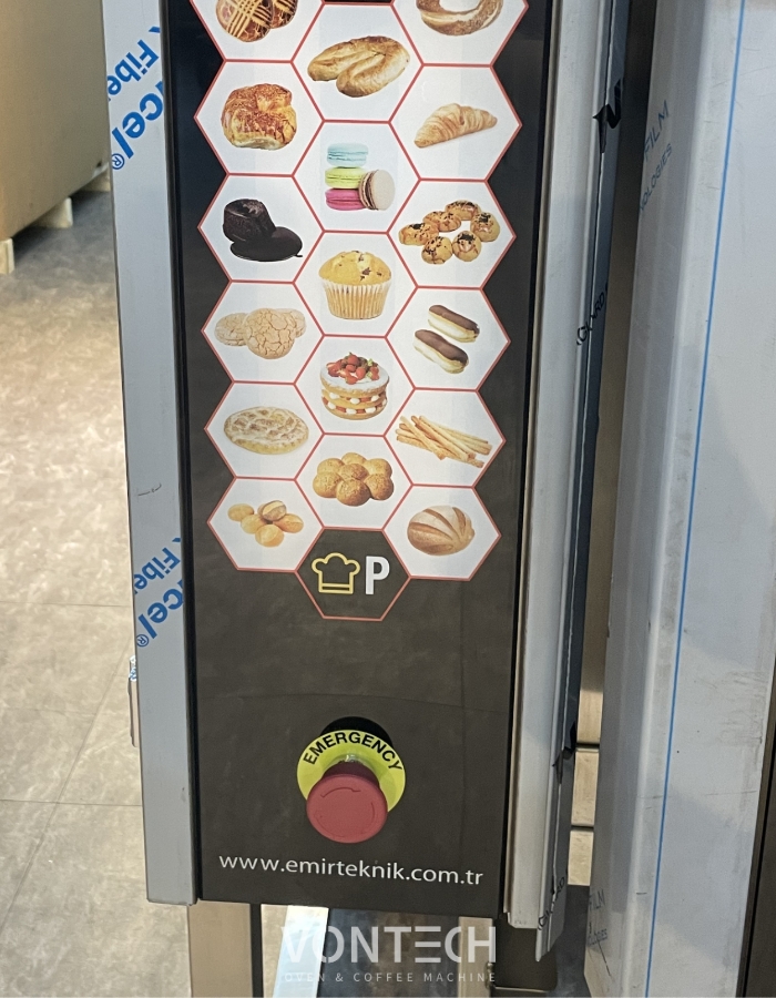 회전식 오븐으로 400*600 빵팬 기준 10매까지 적재할 수 있습니다.