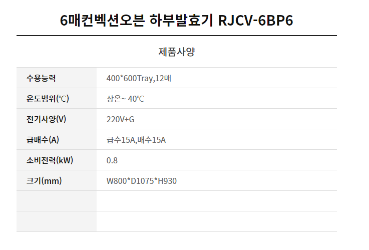 컨벡션 오븐용 하부 발효기
