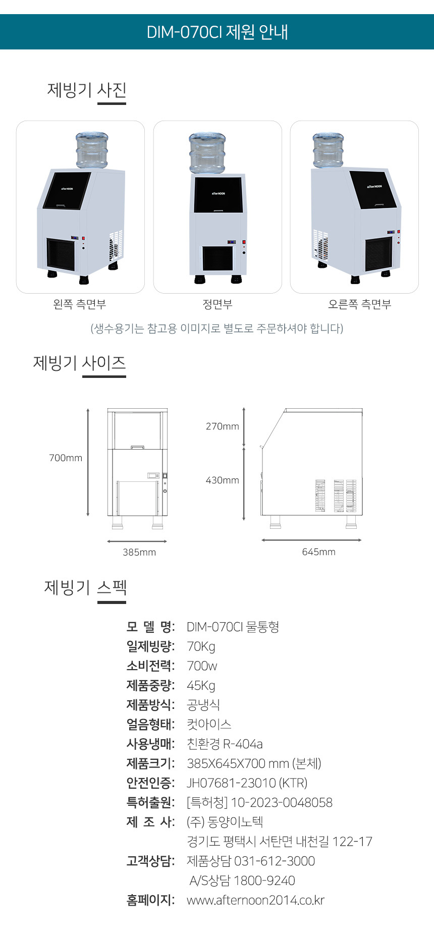 애프터눈 dim-070ci 물통형 제빙기 (정품)