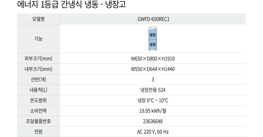 [그랜드우성] 간냉식 에너지 1등급 25박스 올냉장 부산 경남 무료배송