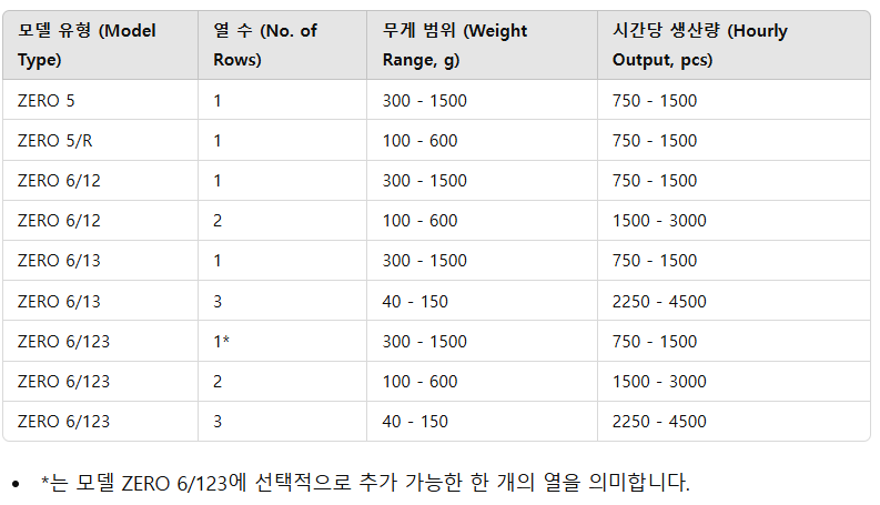 - 모델에 따른 배출 컨베이어 위치 차이: