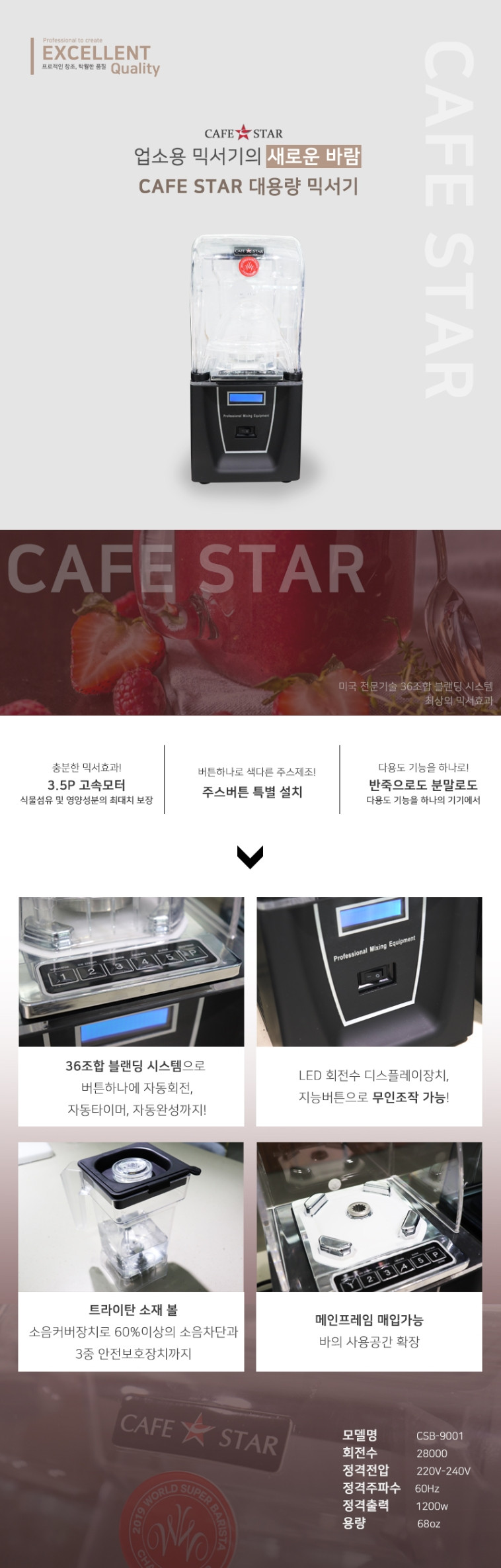 업소용 블렌더 믹서기 카페스타 CSB-9001 블랙유광