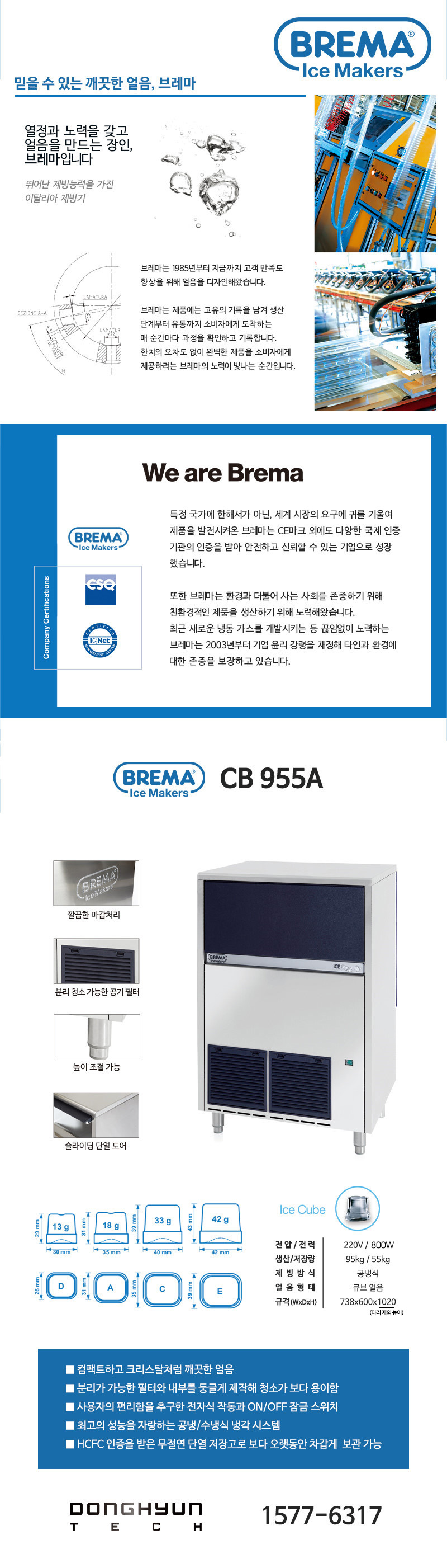 브레마 CB-955A 공냉식 / 큐브얼음 / 95kg생산
