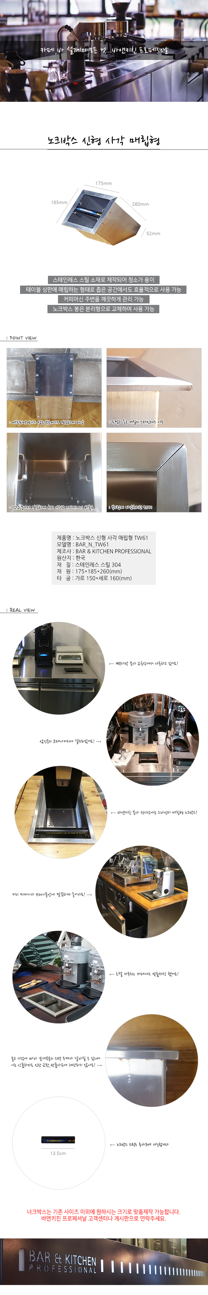 [바앤키친] 노크박스 사각 매립형 TW61