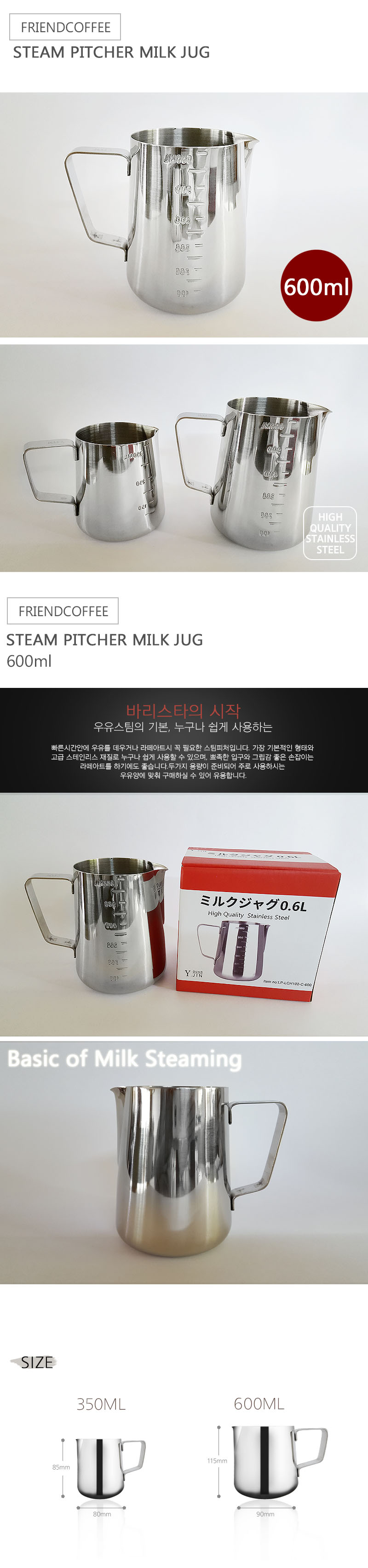 카페용품 우유거품 스팀피쳐 밀크저그 600ml / 눈금표기