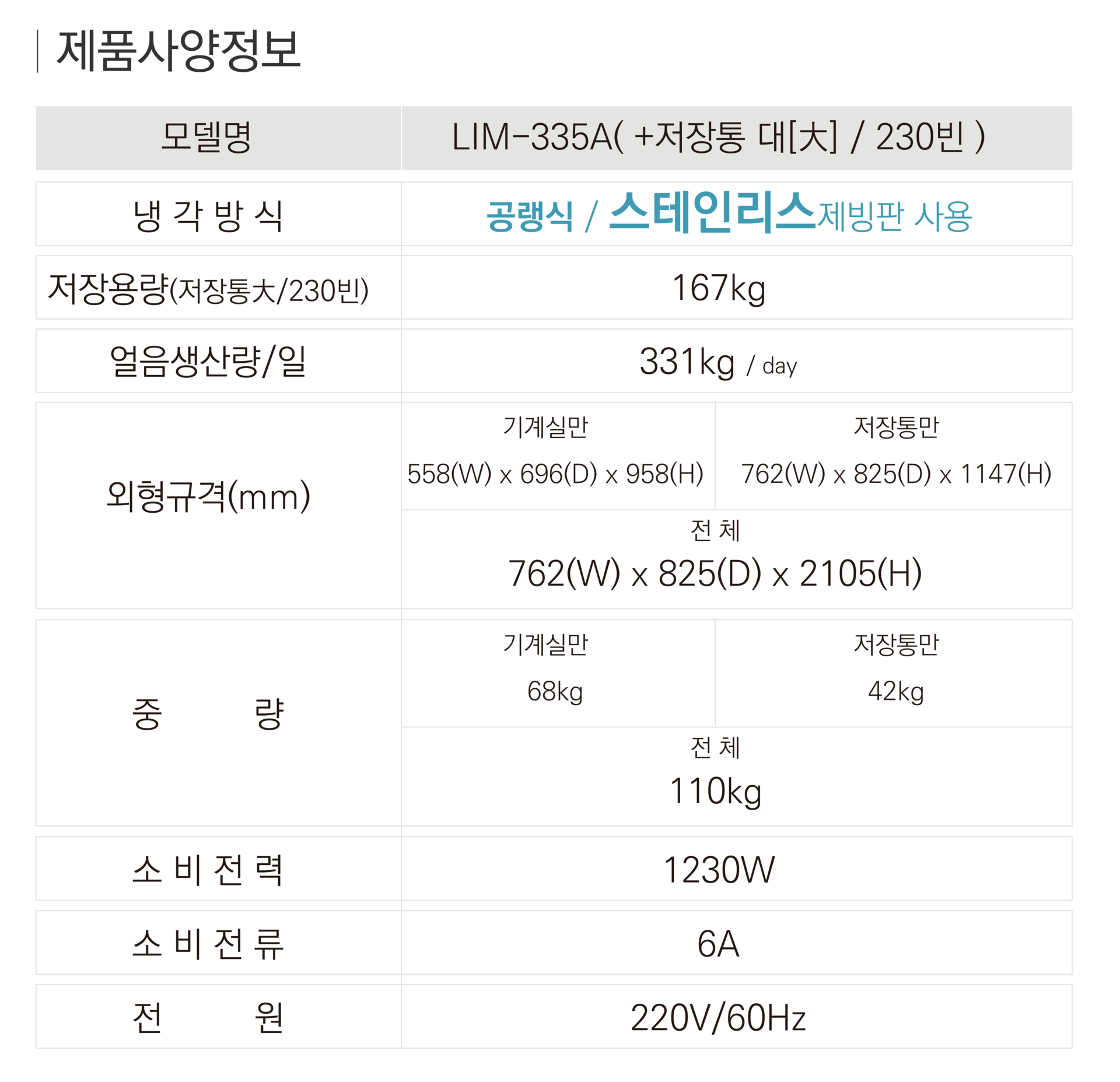 라셀르 331kg 제빙기 LIM-335A 저장통 대(大) / 반달얼음 / 모듈러형 (정품)