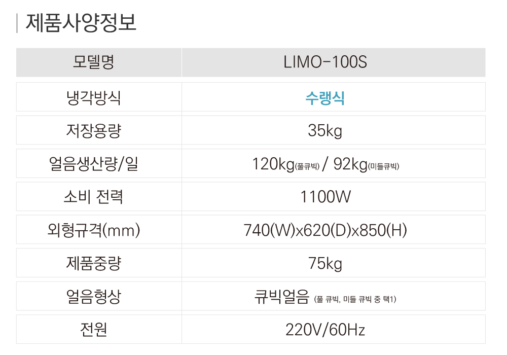 라셀르 120kg 제빙기 LIMO-100S / 큐빅얼음 (정품)