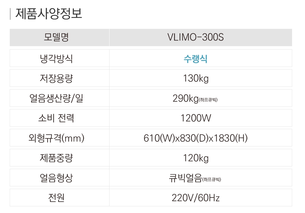 라셀르 290kg 제빙기 VLIMO-300S / 하프큐빅얼음 (정품)