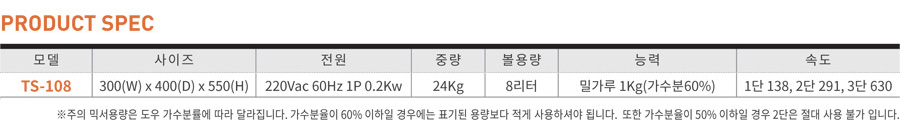 틴소 8L 테이블믹서 TS-108 업소용반죽기 (정품)