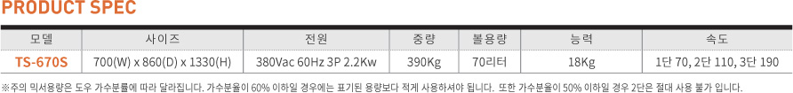 틴소 70L 스탠드믹서 TS-670S 업소용반죽기 (정품)